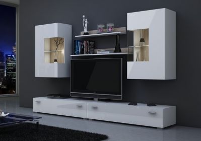 Strona głównaMeblościanki i zestawy mebli do salonuMeblościanka w wysokim połysku Berlin biała